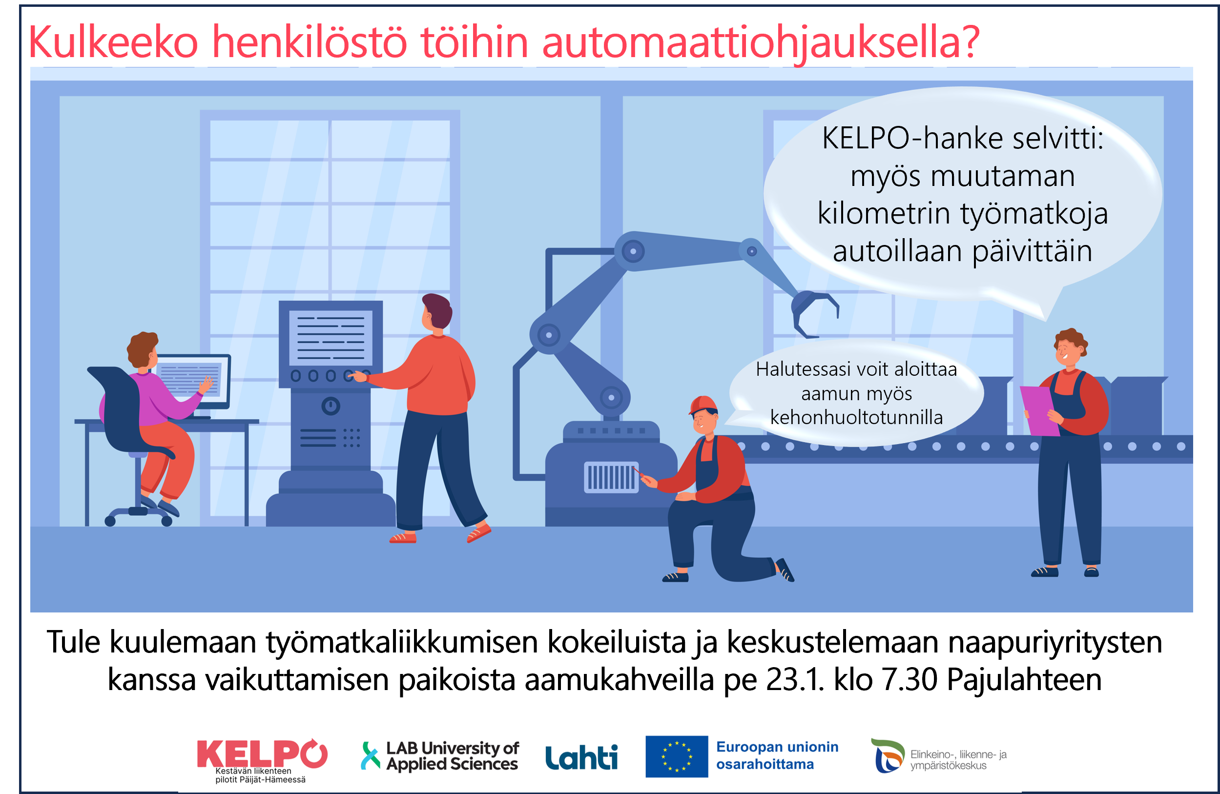 Aamukahvitilaisuuden järjestää Kestävän liikenteen pilotit Päijät-Hämeessä (KELPO) –hanke (EAKR).