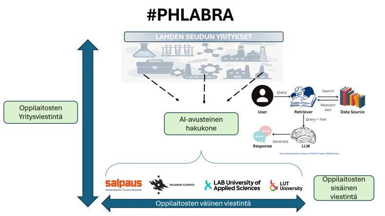 PH-LABRA hankkeen tavoitteena on kehittää ja ottaa käyttöön toimintaympäristö, jolla Lahden alueen oppilaitosten (Salpaus, HY, LUT ja LAB) laboratoriot pystyvät lisäämään ja kehittämään oppilaitosten keskinäistä ja yritysten välistä yhteistyötä elinkeinoelämän tarpeista lähtevään TKI-toimintaan liittyen. Hanke toteutetaan neljän työpaketin avulla. Hanke tuottaa toimintamallin ja suunnitelman konkreettisesta laboratorioiden välisestä sekä paikallisiin yrityksiin kohdentuvasta yhteistyöstä, tekoälyä hyödyntävän tiedonjakoalusta-työkalun sekä työelämälle suunnatun viestintämateriaalin. Oppilaitosten yhteinen tilannekuva sekä mahdollisuudet hyödyntää eri analyysilaitteita ja tiloja tukee yrityksiä tuotteiden, materiaalien, palvelujen, tuotantomenetelmien ja teknologioiden kehittämissä tai käyttöönotossa. Hanketta toteuttavat LAB ammattikorkeakoulu, LUT yliopisto, Helsingin yliopisto ja koulutuskeskus Salpaus yhteistyössä alueen keskeisten toimijoiden ja sidosryhmien kanssa.