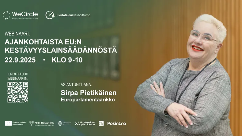 Webinaari järjestetään yhdessä WeCircle – kestävää kasvua kiertotaloudesta -hankkeen kanssa.